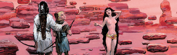 La Gardienne l’accueille en un lieu surnaturel hors du monde. Belle jeune femme nue aux longs cheveux noirs, ses premiers propos sont frivoles, moqueurs. Mais elle se révèle rapidement être une puissante magicienne.